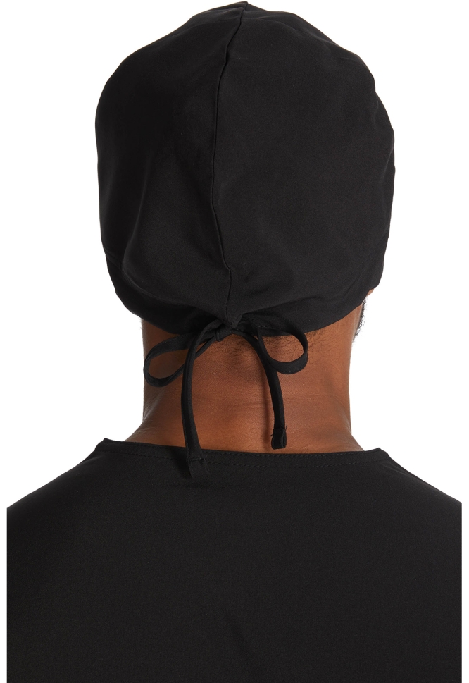 Хирургична шапка, модел унисекс с вградена, задържаща потта мека лента от хавлиена материя в областта на челото и връзка на тила.
