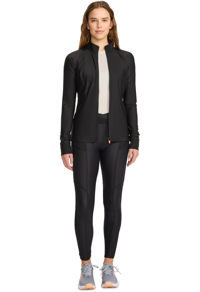 Прилепналата кройка създава дефиниран силует, с 360-градусова еластичност, за всестранно движение.